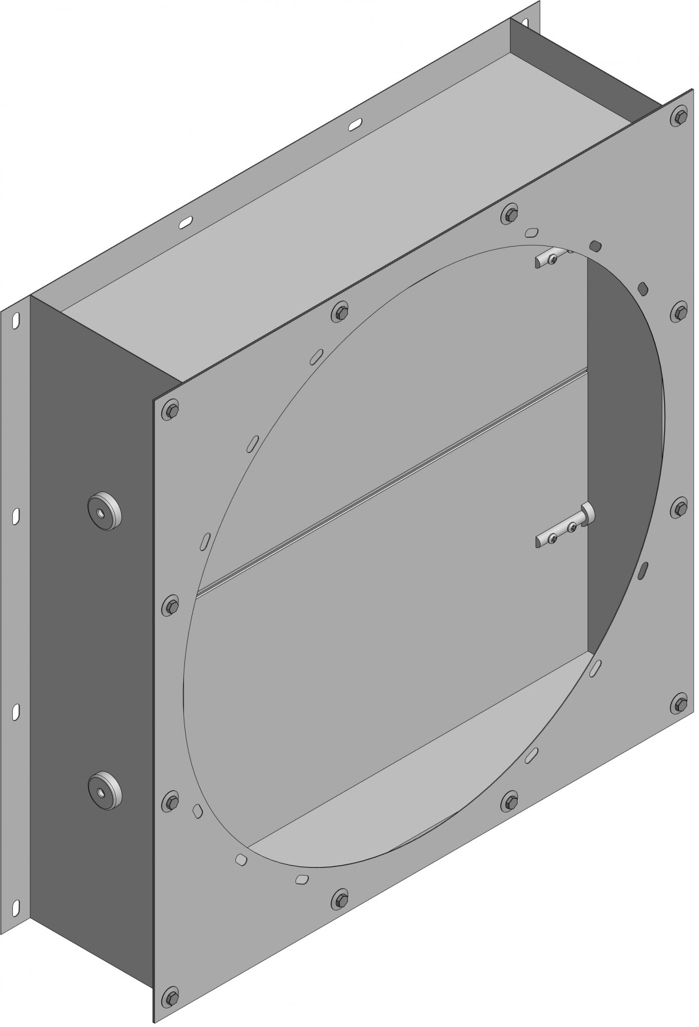Клапан представляет собой сварной корпус из углеродистой стали окрашенный в защитное лакокрасочное покрытие, в подшипниках которого на осях закреплены лопатки. Подшипники обеспечивают свободное открывание клапана в условиях отрицательных наружных температур при периодической работе вентиляторов.